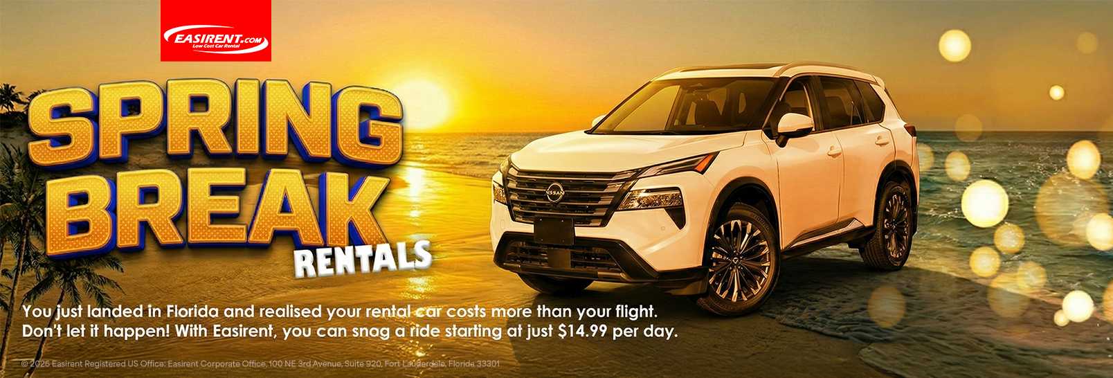 At Easirent, we offer the lowest car rental prices in Florida, with frequent promotions and special offers to make your experience even more affordable.